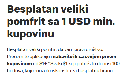 Pravila programa vjernosti doista su jednostavna; prvu nagradu, srednji pomfrit, kupci dobijaju kada potroše prvi dolar sa karticom,