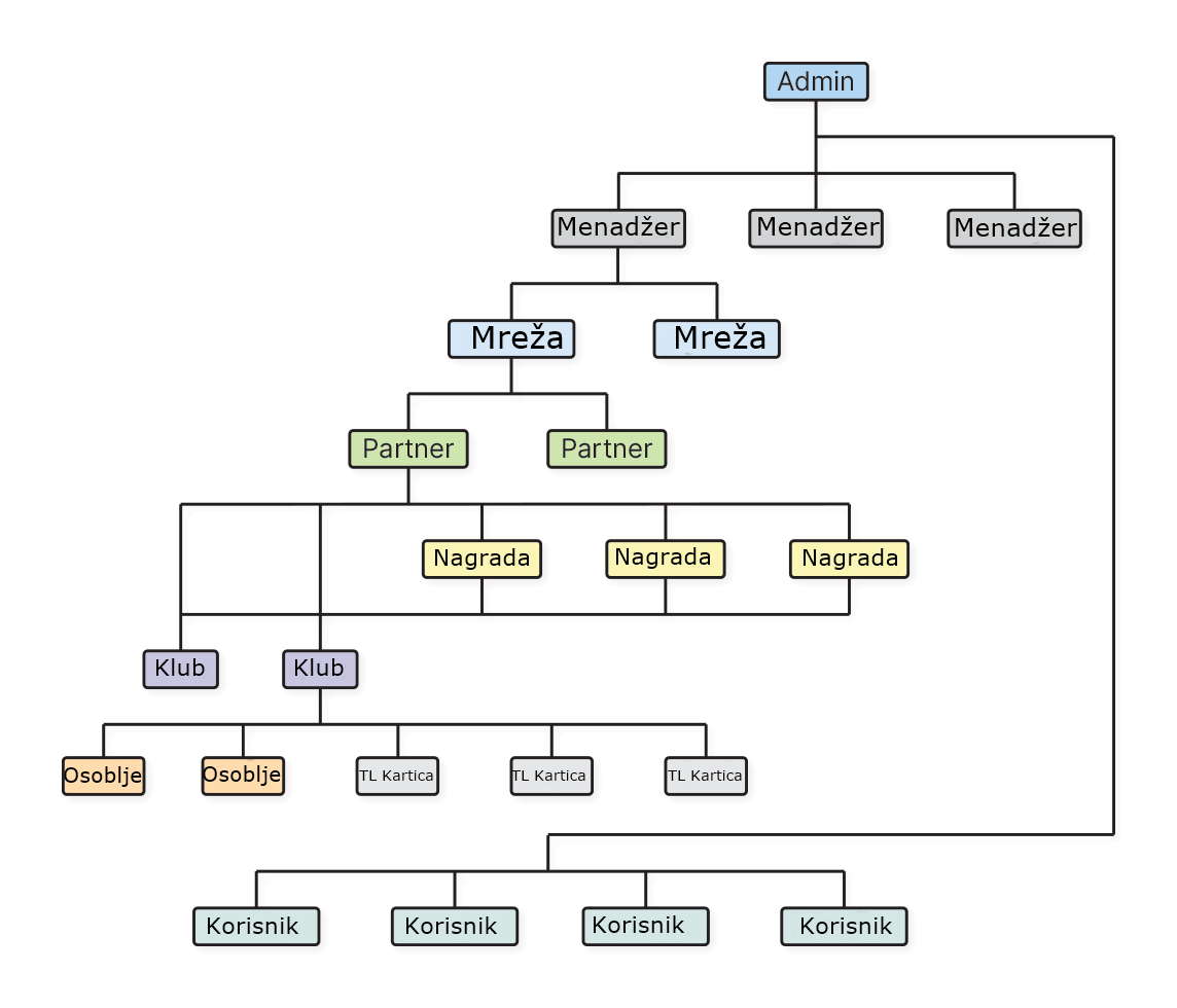 Strukturu Top Loyalty-ja opisanu iznad pogledajte na šemi ispod: