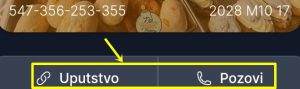 Odmah u vrhu ekrana su dva dugmeta, jedno je za link na željenu stranicu, a klikom na drugo (“Poziv”) se ostvaruje direktno biranje broja za određeni kontakt.