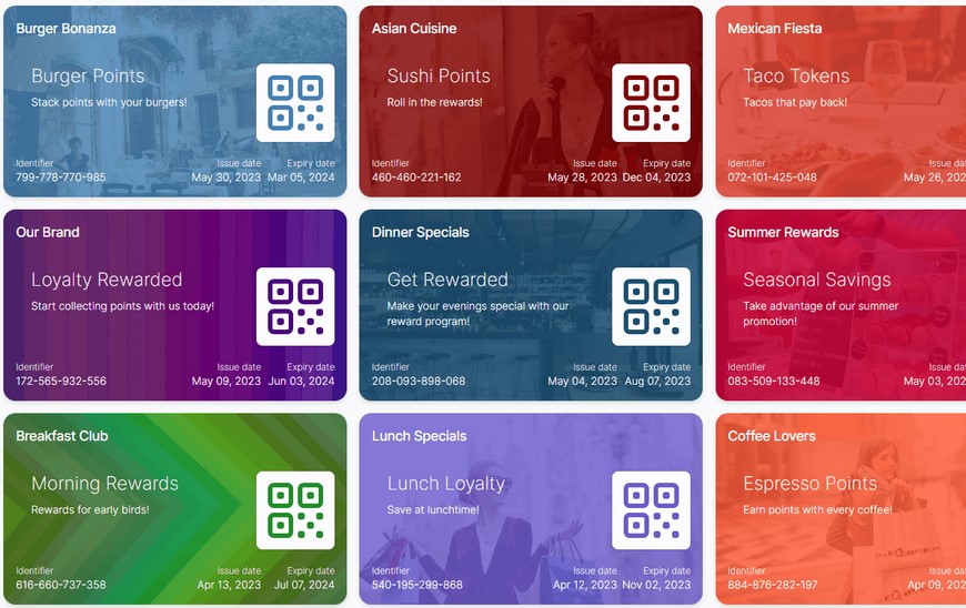 Pogledajte samo12 od mogućih nekoliko desetina kartica koje mogu biti istovremeno u vašem “Novčaniku”, a koje možete pogledati na demo platformi https://toployalty.net/bs-ba (trenutno 23 kartice kao demo):